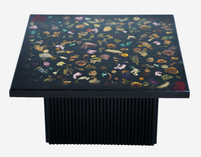 Blooms Forever in Bloom: Our Flora coffee table is a captivating piece featuring delicately hand-dried flowers, forever preserving the charm of springtime. This unique table captures the essence of nature's beauty, adding an eternal touch of elegance to your space. With every glance, it brings the enchanting allure of blooming flowers into your home, making it a stunning centerpiece that celebrates the timeless splendor of nature.