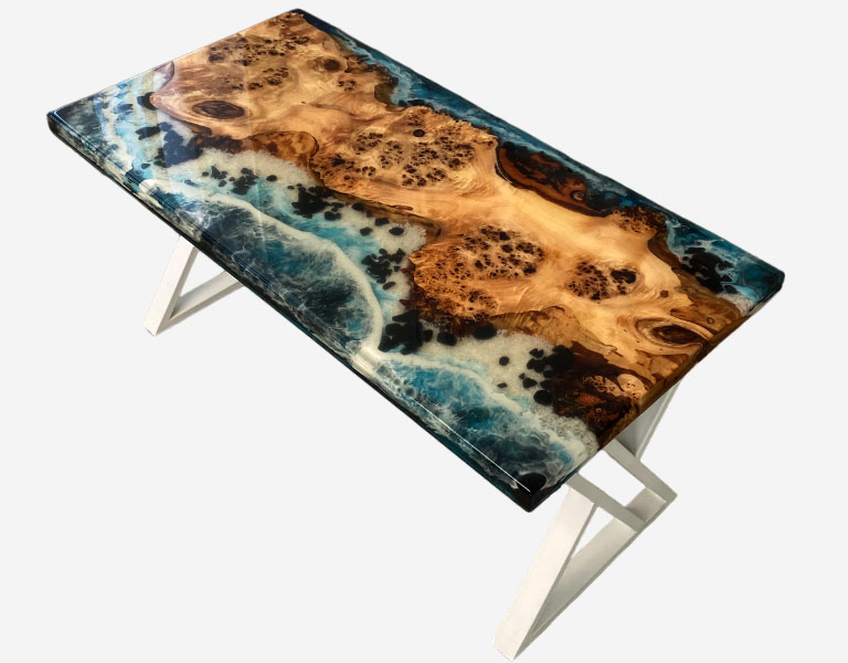 Transform your space with the serene elegance of our Resin Ocean Waves table.